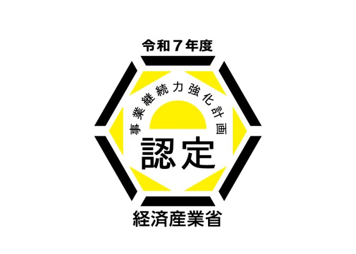 「事業継続力強化計画(BCP)」の認定を受けましたことをお知らせいたします。